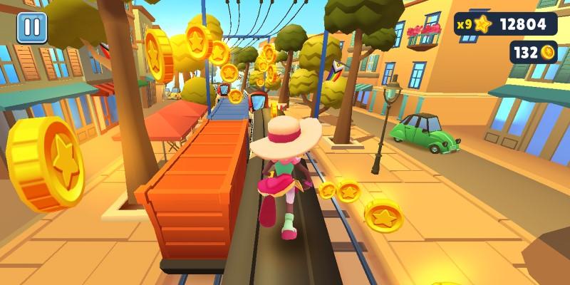 Subway Surfers throws you straight into a fast-paced chase through subways, trains, and cityscapes. You play as Jake (or any other character you unlock), tagging trains with spray paint, then running for your life from a grumpy inspector and his dog. It’s endless, which means the only thing that ends the run is a mistake — like hitting a train or a barrier head-on.