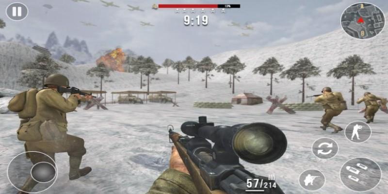 The gameplay is built around single-player campaign missions, dropping you into historic war zones. The controls are simple: one side of the screen handles movement, and the other controls aim and fire. It's nothing fancy, but it works smoothly. The gunplay feels solid. Weapons kick just enough to feel real but not enough to make aiming frustrating. You're not getting hyper-realistic damage or tactical reloads here—just point, shoot, and move forward.
