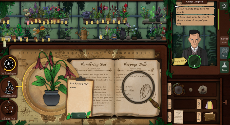 Step 9: Use riddles, coordinates, or environmental hints (fog, elevation, landmarks) to pick map locations. Successful excursions yield rare plants or lore.
